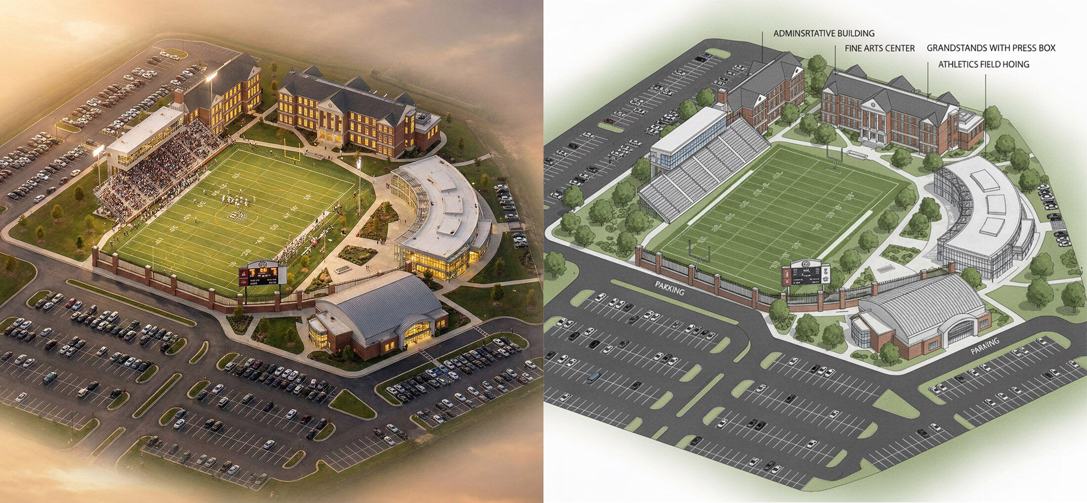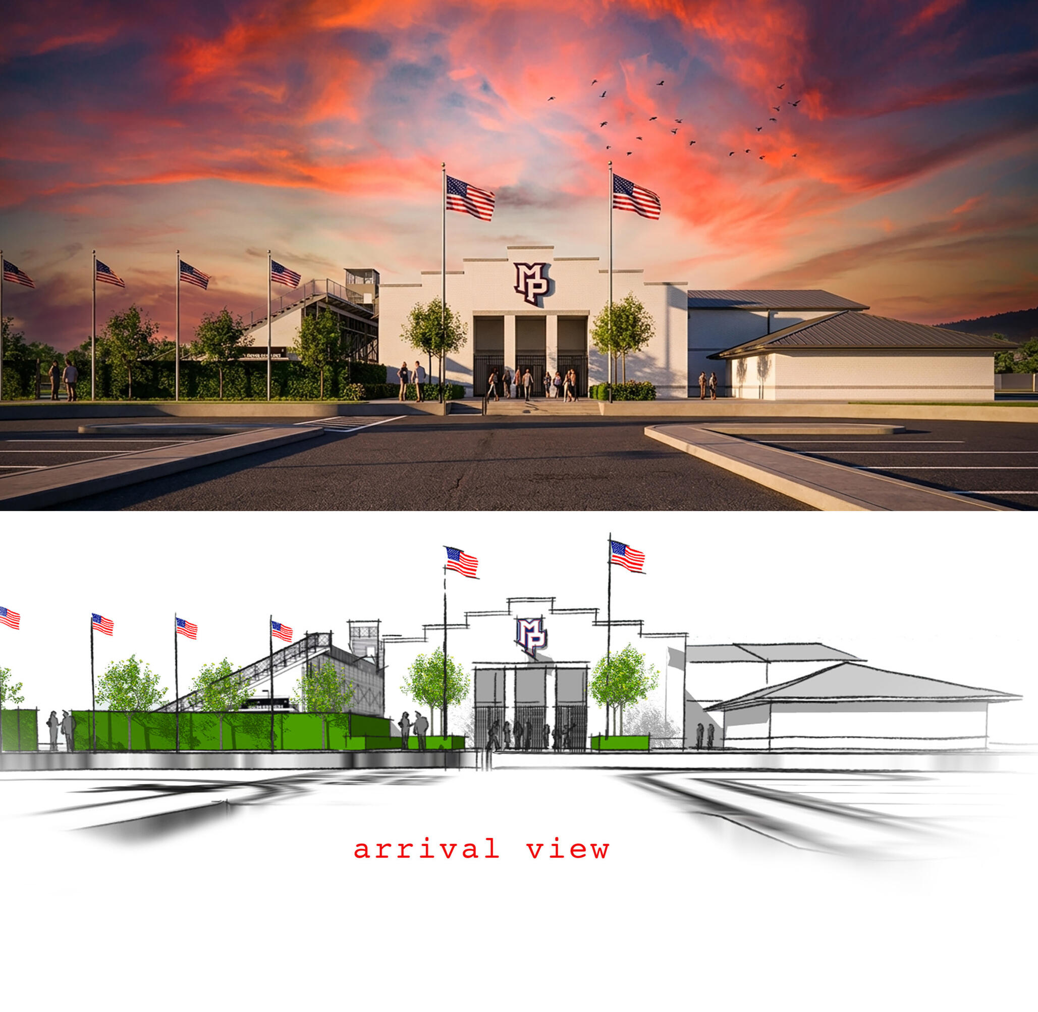 axonometric graphic + ai gameday render