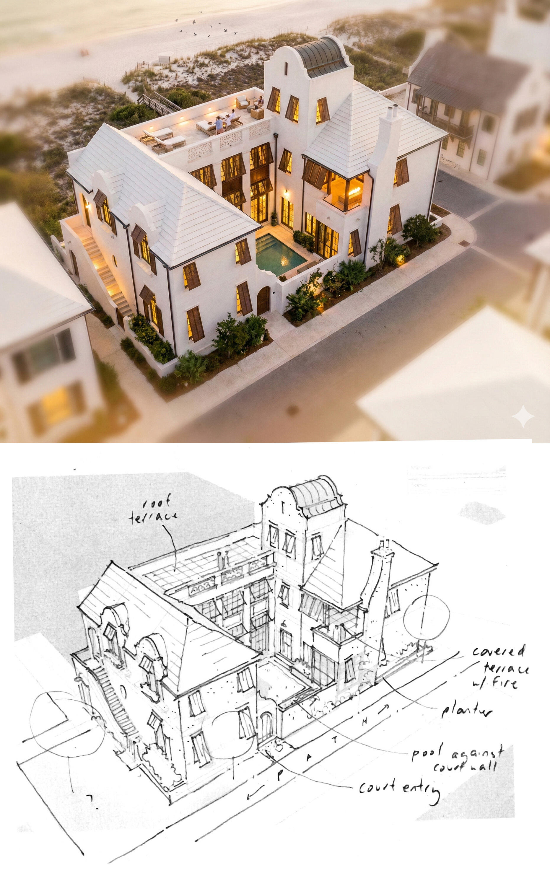 - early sketching and visual studies to explore massing, character, and direction